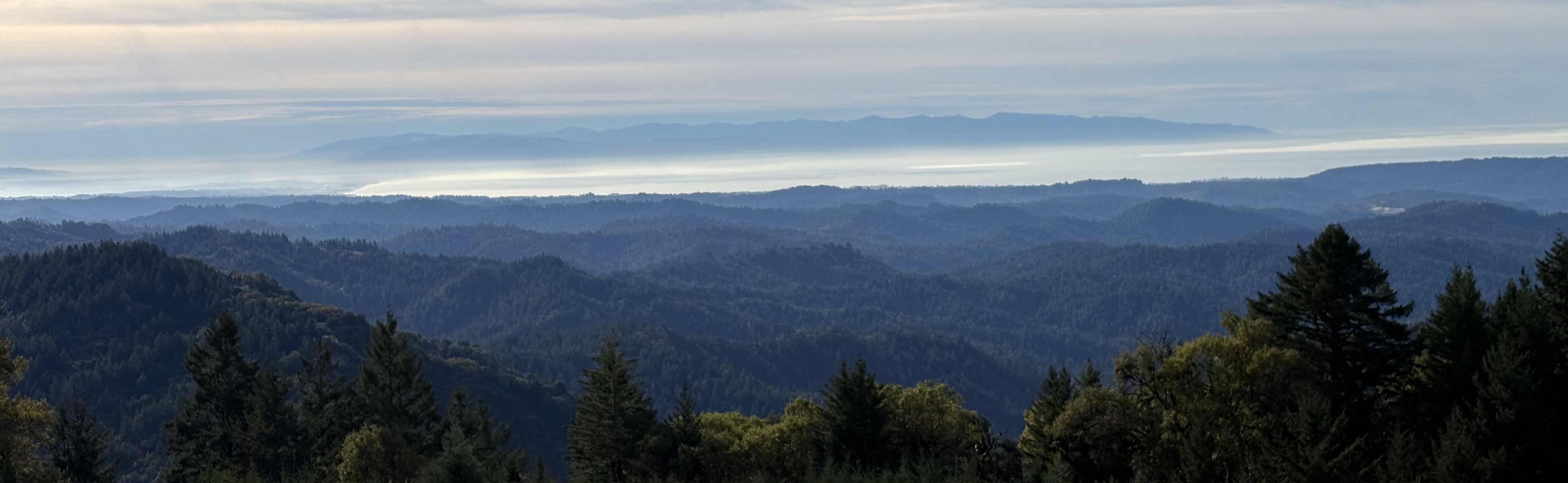 From this vantage point, the land commands timeless Coastal California views to the south, Monterey Bay stretches across the horizon, while to the west, the sunsets frame the historic **CalFire Mt. Bielawski fire lookout tower**. The property sits just a short distance from **Silicon Valley**, yet remains entirely secluded, offering a rare combination of accessibility and remote mountain beauty.